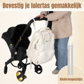 Verwijder voor het wassen alle accessoires, zoals kinderwagenclips of andere bevestigingen, om te voorkomen dat deze beschadigd raken of slijtage veroorzaken aan de tas. Laat de tas bij voorkeur aan de lucht drogen. Vermijd direct zonlicht, om de kleuren en materialen optimaal te behouden.
