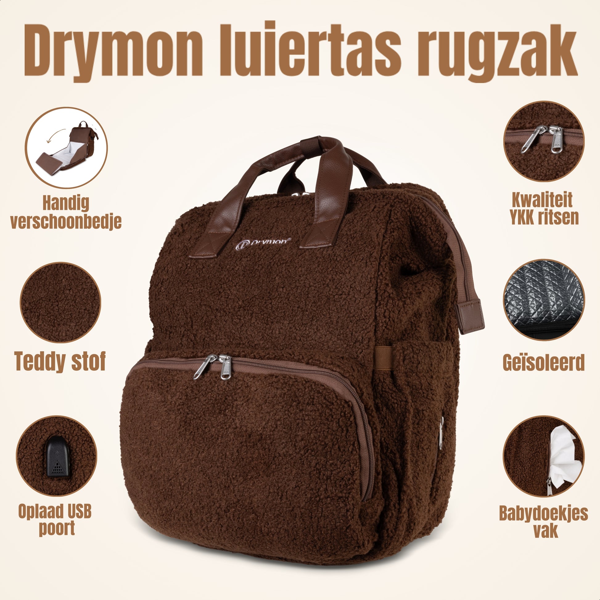 Met de Drymon luiertas-rugzak heb je altijd alles georganiseerd en binnen handbereik, precies wanneer je het nodig hebt. Geen haastig zoeken in een overvolle tas, geen frustratie, alleen rust en gemak. Zodat jij je kunt focussen op wat echt telt: genieten van de momenten met je kleintje.